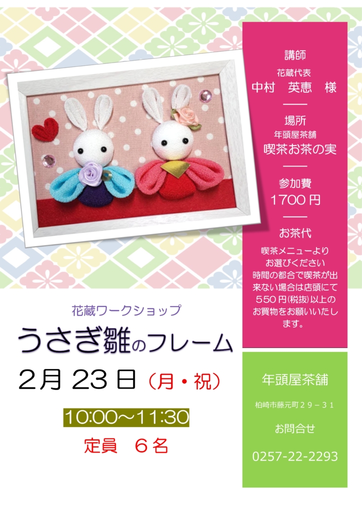 気軽に飾れる【うさぎ雛のミニフレーム】毎年大人気のワークショップです。