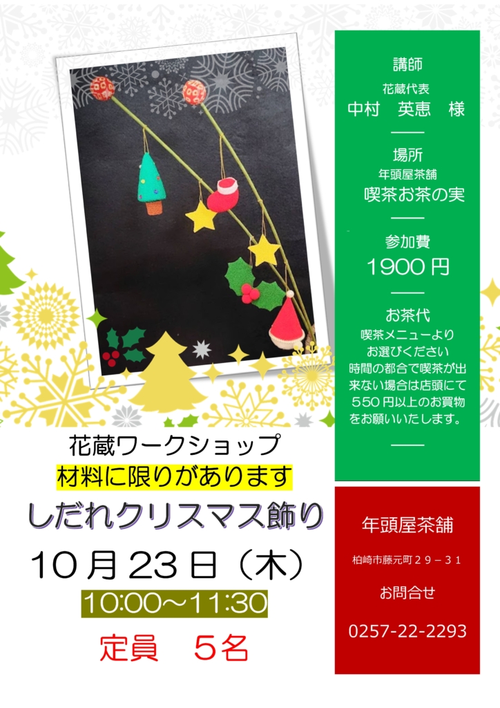 10/23(木)花蔵ワークショップ しだれクリスマス飾り