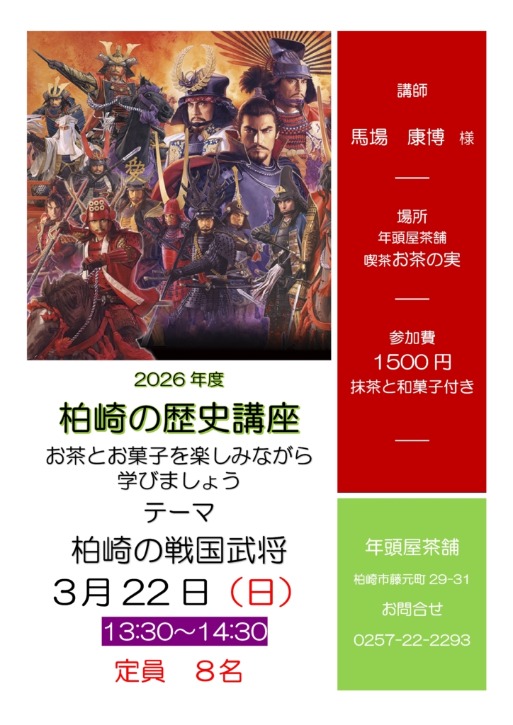 3/22(日)柏崎の歴史講座 柏崎の戦国武将 13:30 ~ 14:30