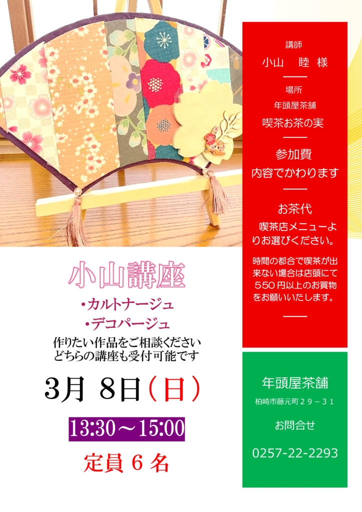 3/8(日)小山講座 デコパージュorカルトナージュ(リクエスト) 13:30 ~ 15:00
