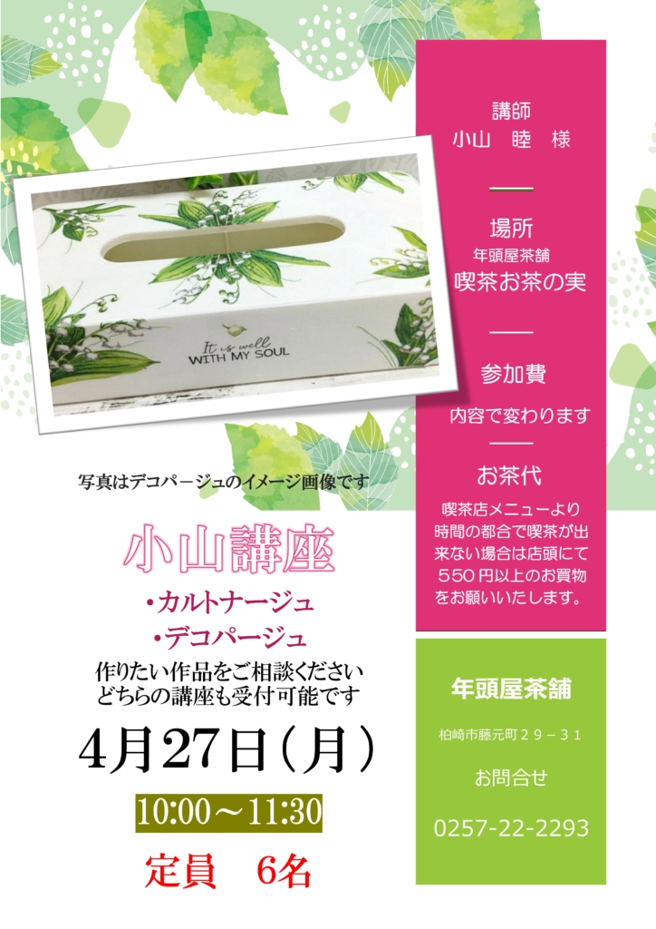 4/27(月)小山講座 デコパージュorカルトナージュ(リクエスト) 10:00 ~ 11:30