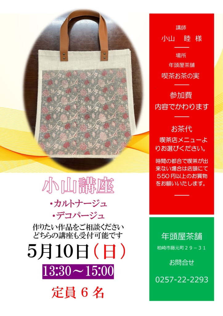 5/10(日)小山講座 デコパージュorカルトナージュ(リクエスト) 13:30 ~ 15:00