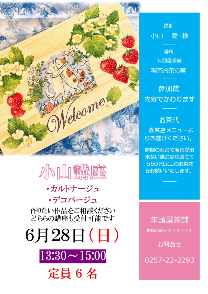 6/28(日)小山講座 デコパージュorカルトナージュ(リクエスト) 13:30 ~ 15:00